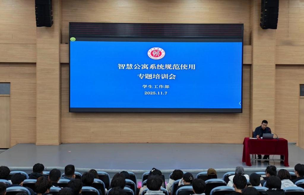 为全面确保学生扎实掌握智慧公寓平台使用技能,提升公寓信息化、规范化管理水平,11月7日下午学生工作部在美术楼报告厅组织召开智慧公寓系统规范使用专题培训会,全体学生负责人参会。